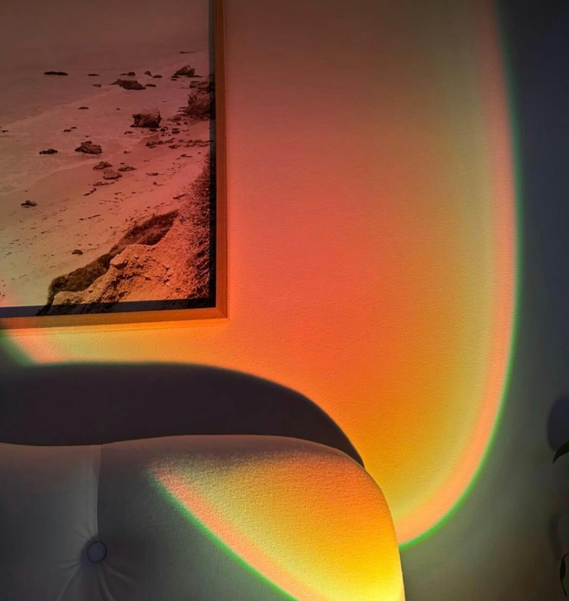 Enjoy breathtaking sunsets without leaving home. The Sunset Lamp Projector casts vibrant circular light patterns on your wall, ceiling, or floor. The farther the lamp is placed, the larger the projection — giving you that serene seaside sunset vibe, even on the coldest days.